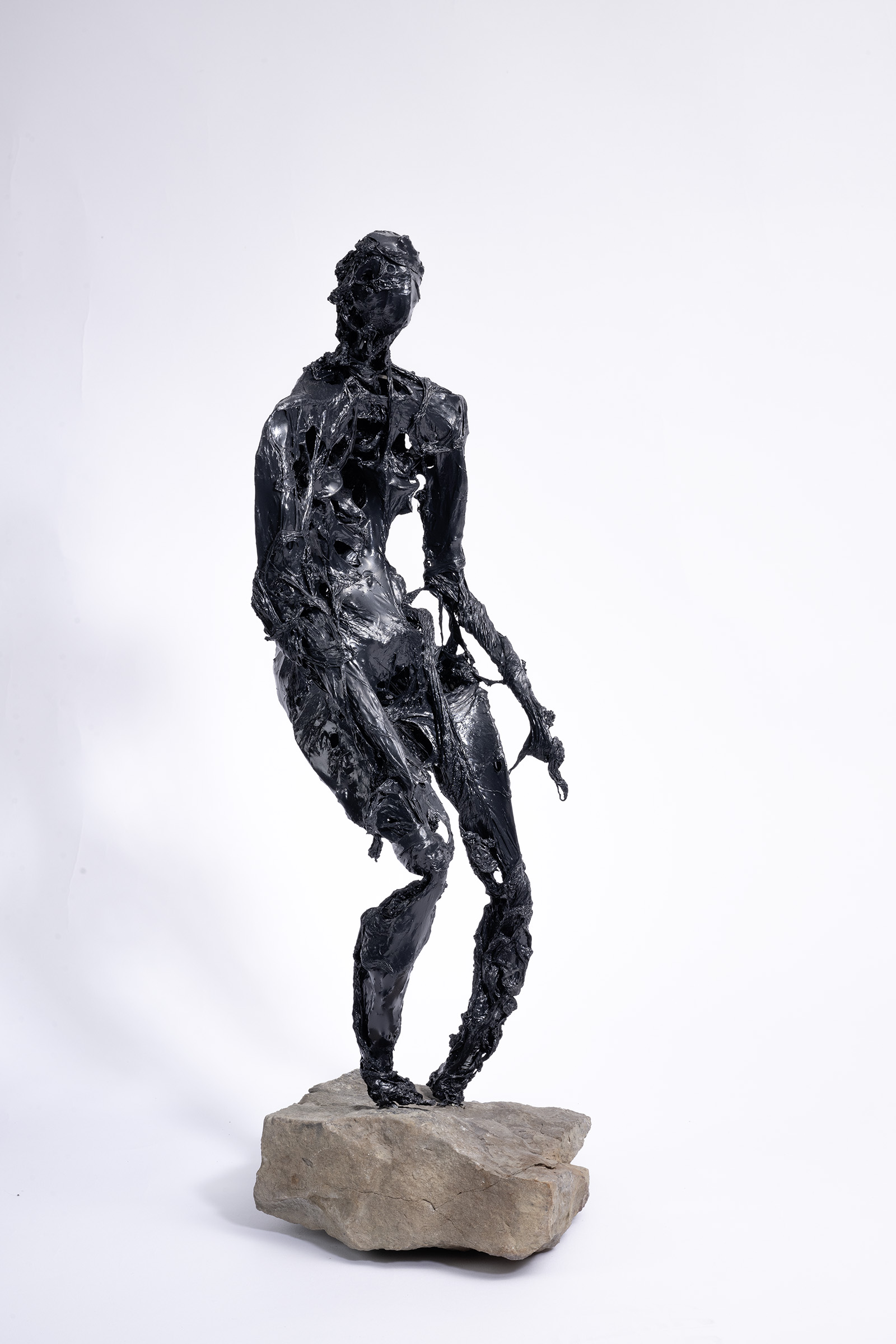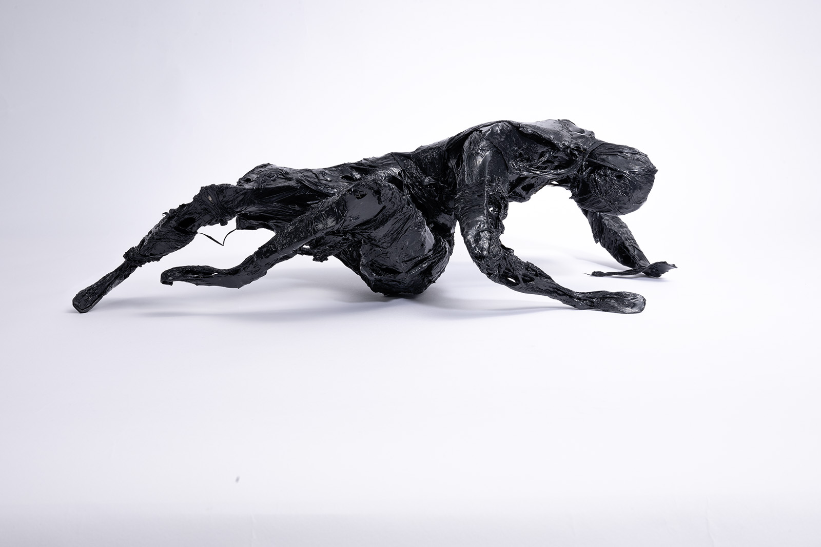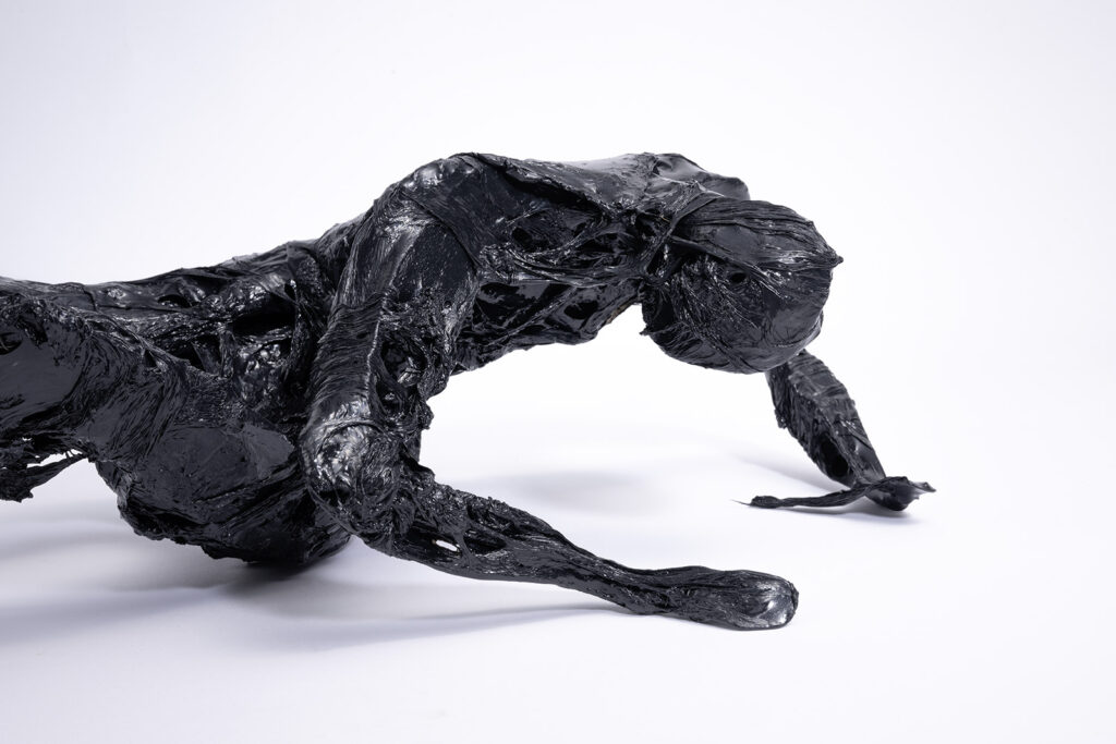 Schwarze Plastiken aus Kunststoff sind Fragmente menschlicher Zustände.