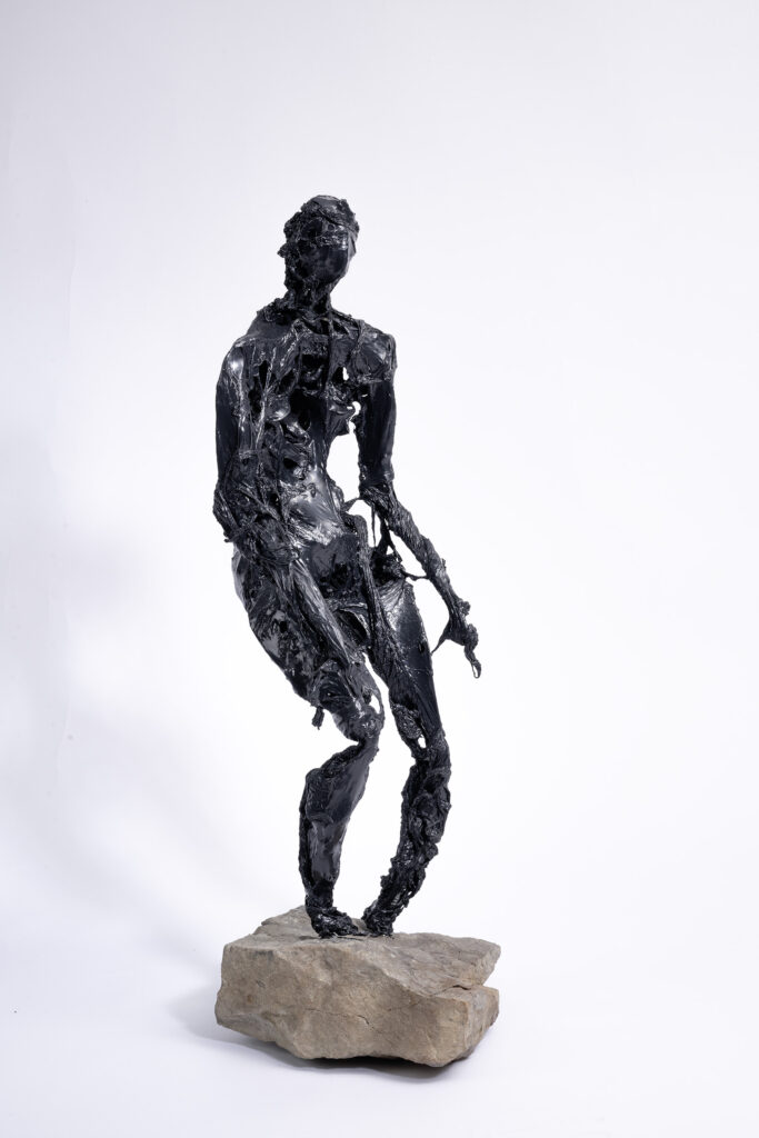Bei meinen Keramikplastiken arbeite ich mit schwarzem Ton. Beim Modelieren möchte ich kein Abbild einzelner Personen darstellen. Stattdessen versuche ich, innere Zustände nach außen zu tragen und ihnen einen sichtbaren Ausdruck zu geben.